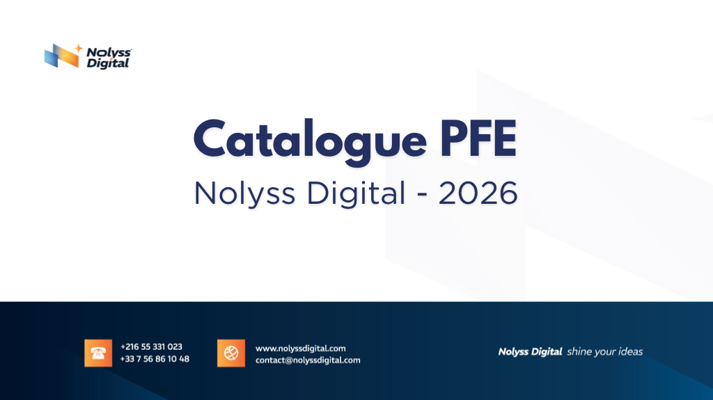 PFE Book 2026 - Nolyss-DigitalS’engager dans un stage de fin d’études chez Nolyss Digital, c’est intégrer une agence qui conjugue savoir-faire technologique et créativité humaine, pour accompagner les entreprises dans leur transformation numérique. Ces projets offrent aux étudiants un cadre propice au développement de compétences techniques avancées, à la gestion de projets collaboratifs et à une immersion professionnelle riche. Ils permettent aussi de bâtir un portefeuille solide, indispensable pour une carrière réussie dans les métiers du numérique.
